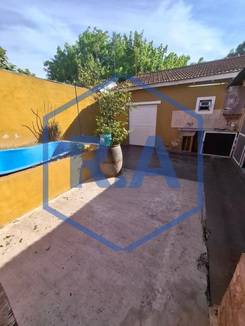 Casa con entrada de rejas, living, cocina-comedor de concepto abierto, dos habitaciones, baño completo, patio con lavadero y pileta.